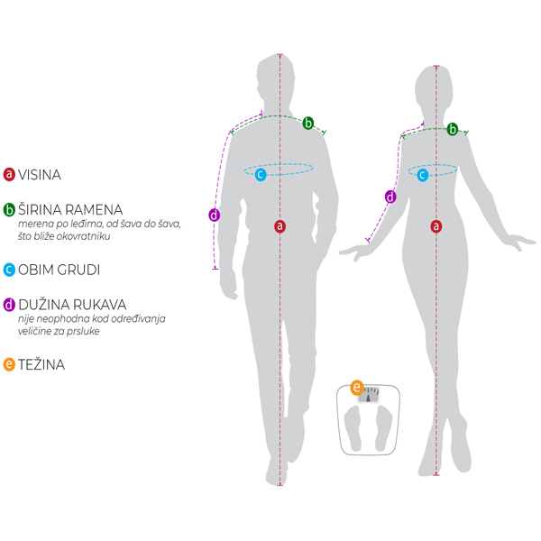 Na osnovu vaših mera odredićemo veličinu koja je potrebna.